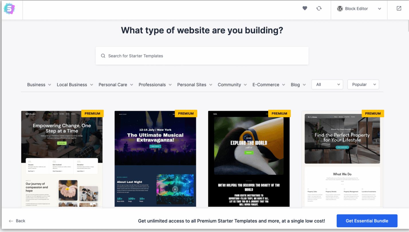 However, if you want to access the premium importable starter sites, you’ll need to purchase at least the Essential Bundle, which starts at $199.