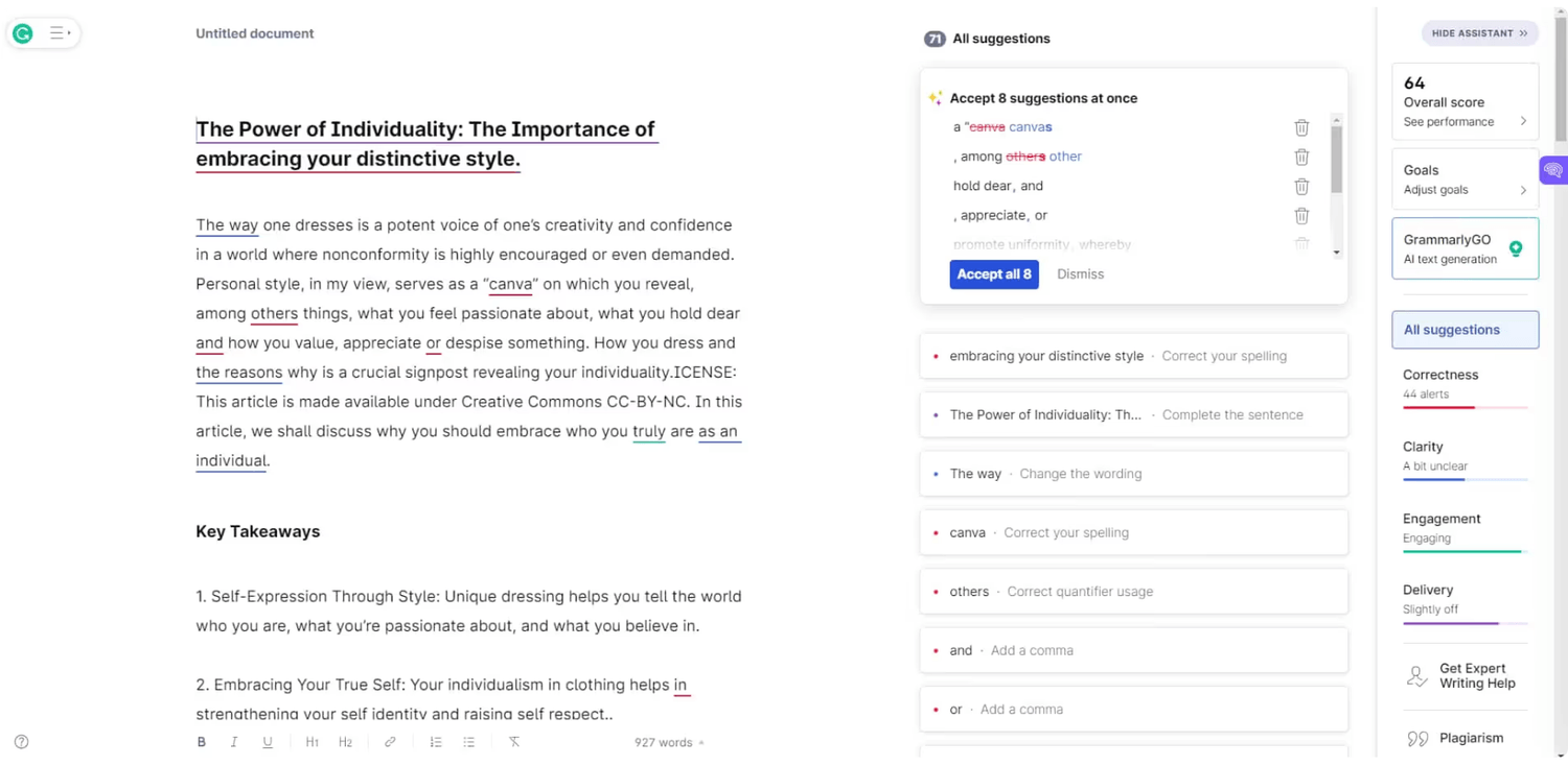 I was suspicious of the results, so I decided to read through the content provided by StealthWriter. I quickly noticed that it was riddled with grammatical errors (44, according to Grammarly Pro).